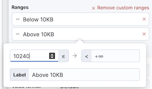 Create a proportional visualization that helps you determine if your users transfer more bytes from documents under 10KB versus documents over 10Kb.