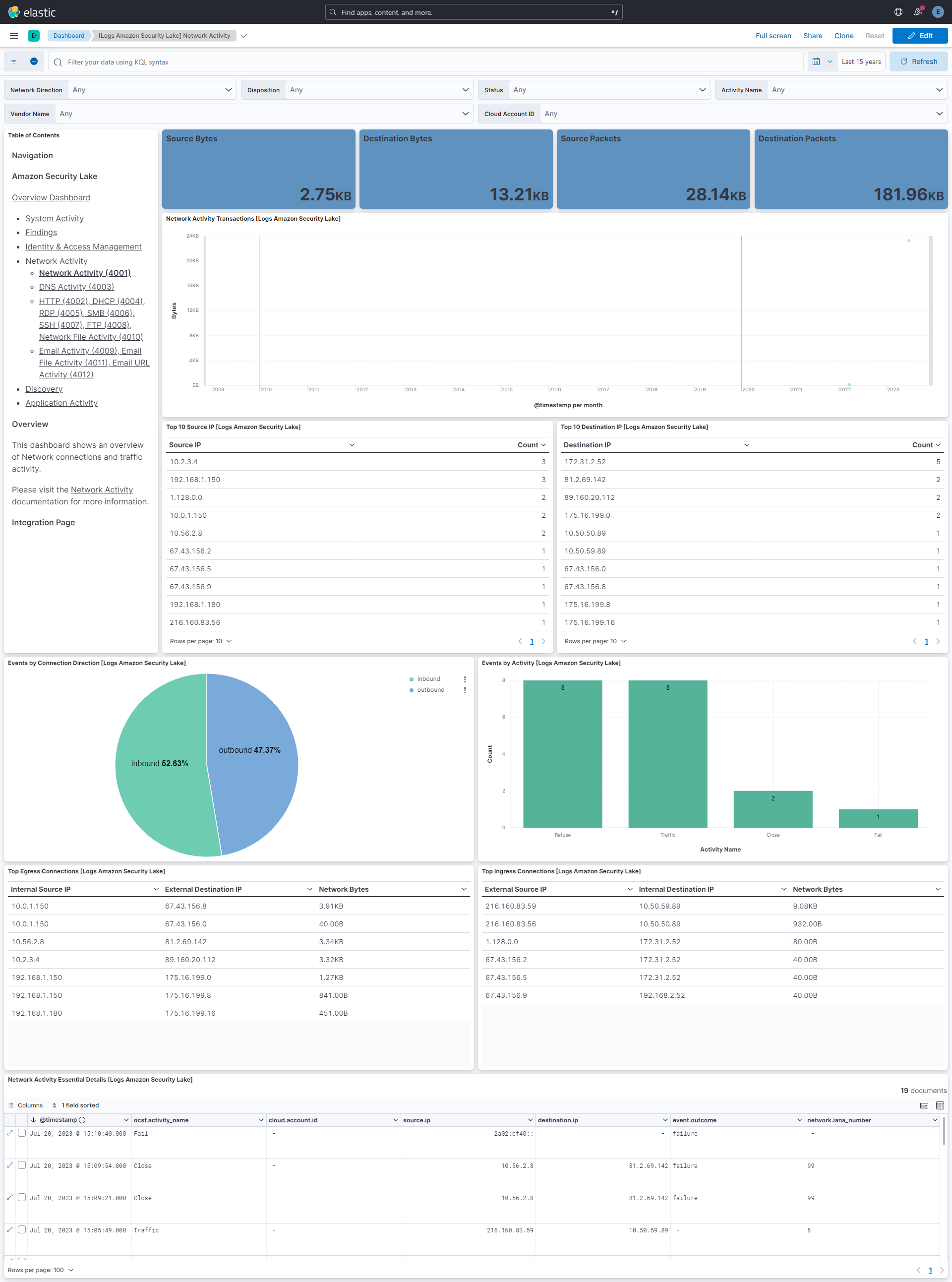 This integration includes one or more Kibana dashboards that visualizes the data collected by the integration. The screenshots below illustrate how the ingested data is displayed.