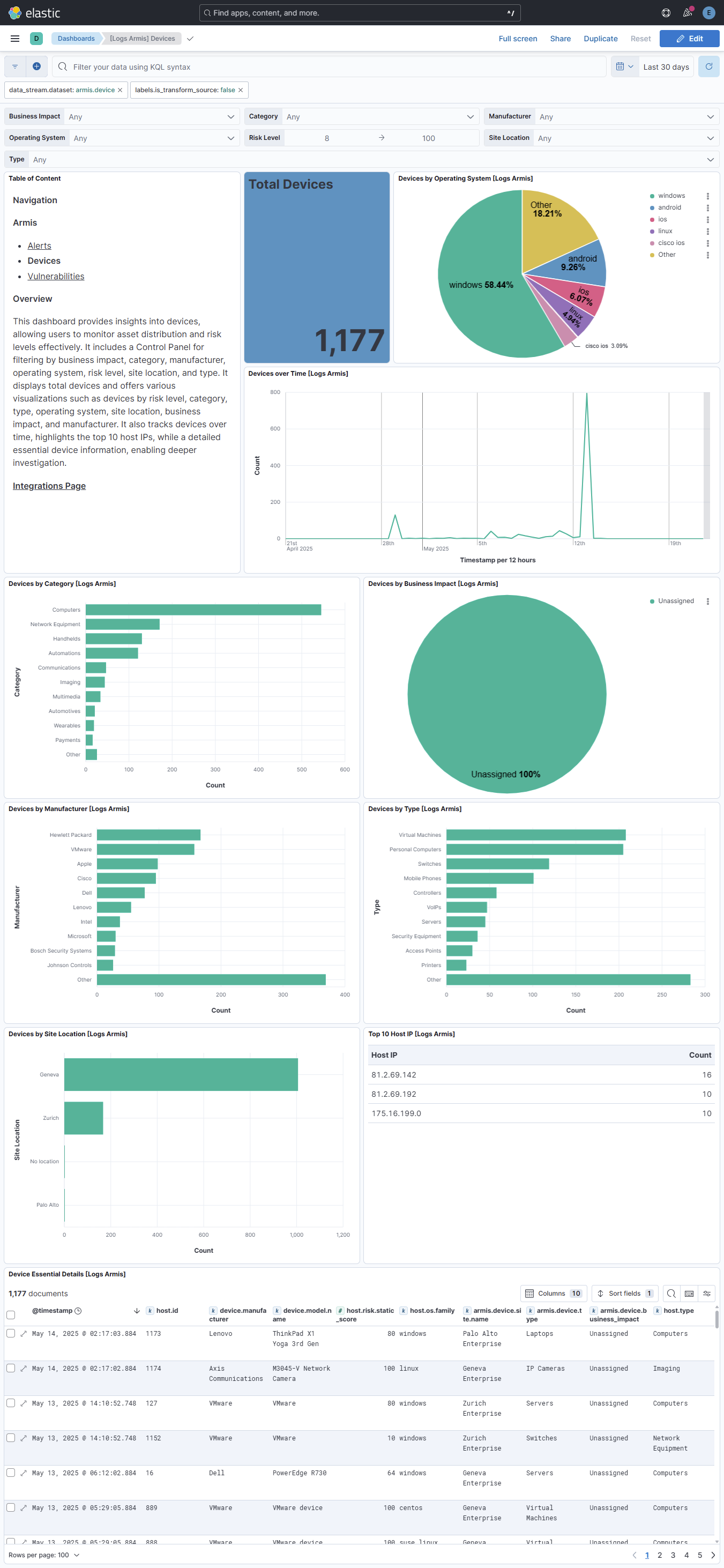This integration includes one or more Kibana dashboards that visualizes the data collected by the integration. The screenshots below illustrate how the ingested data is displayed.
