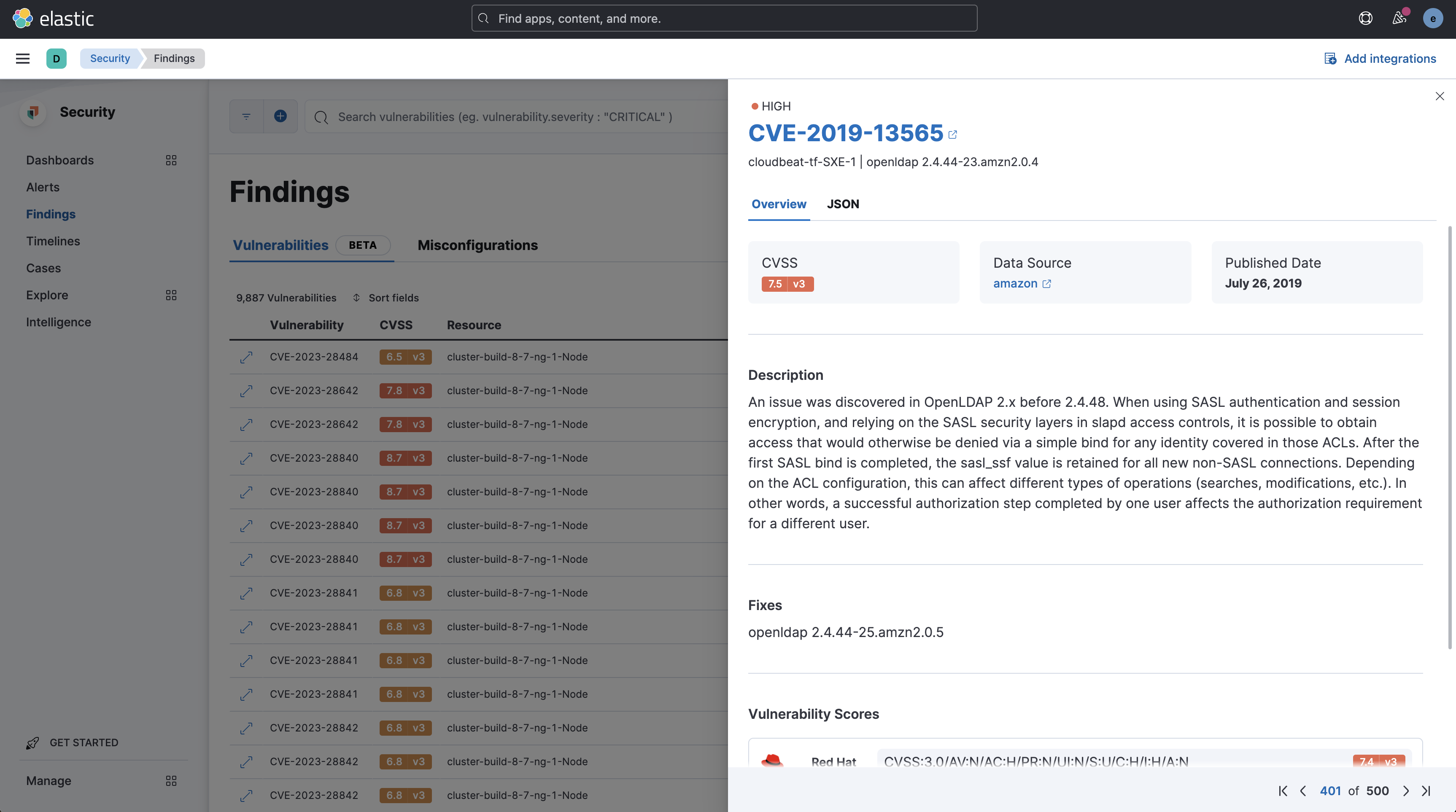 1.3.0 | Enhancement (View pull request) New vulnerability management integration Enhancement (View pull request) Support ECS orchestrator.cluster.id field Enhancement (View pull request) Added categories and/or subcategories. Enhancement (View pull request) Added vulnerability management period and removing region Enhancement (View pull request) Change CSPM resource collection period Enhancement (View pull request) Update CNVM index mapping Enhancement (View pull request) Add CIS AWS rules 1.16, 1.17, 1.19, 1.20, 2.1.5, 2.3.3 |