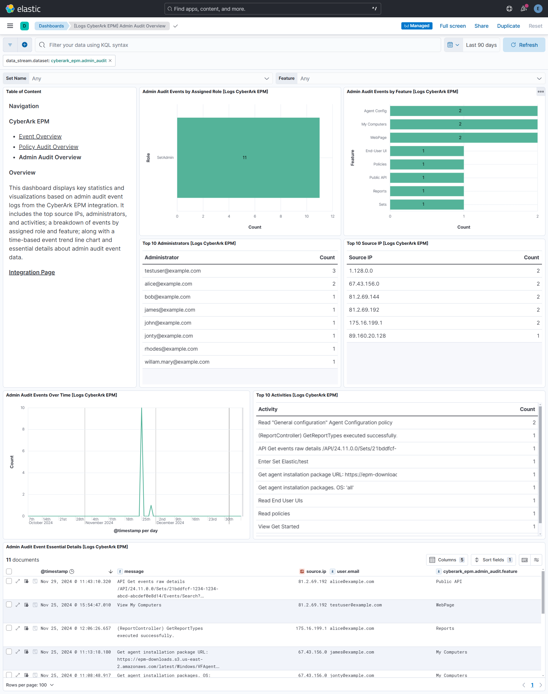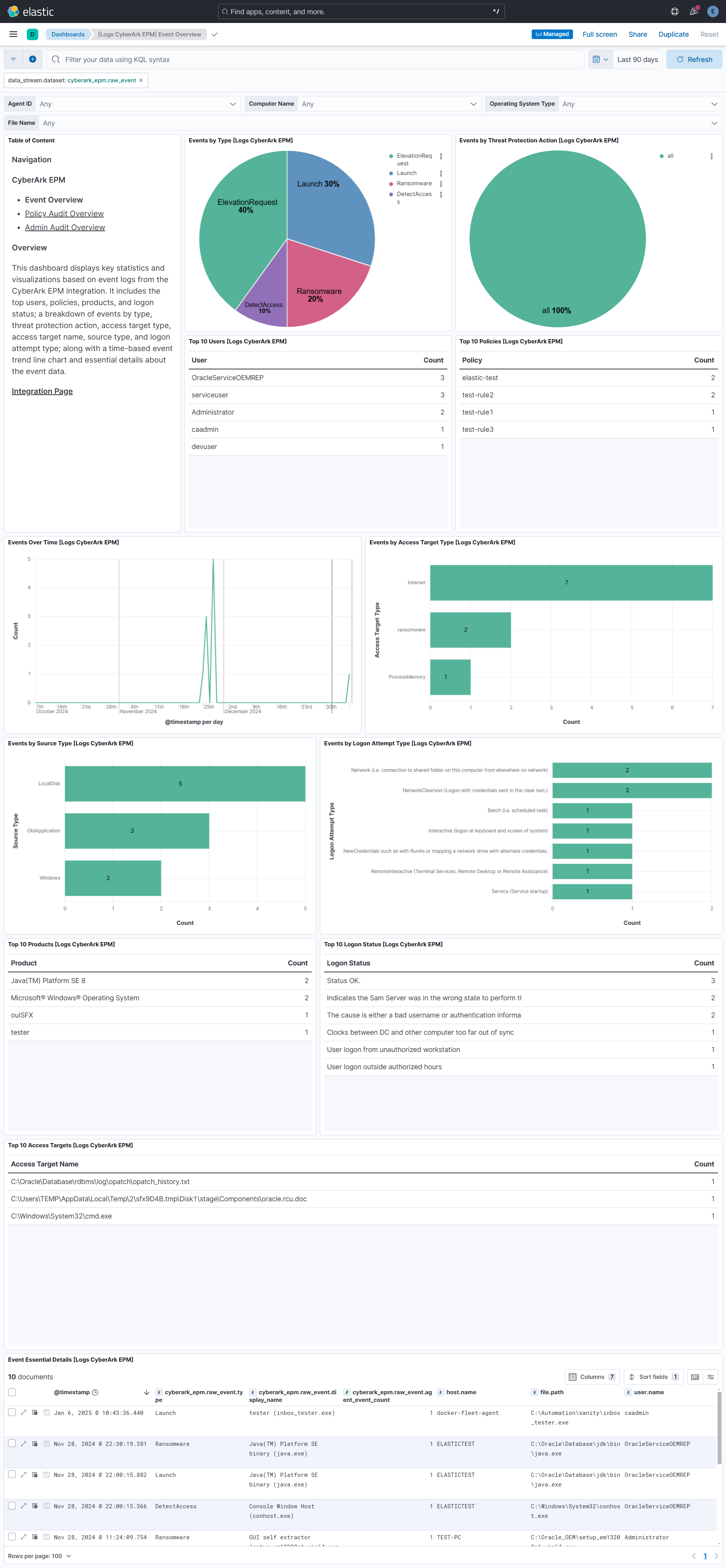 This integration includes one or more Kibana dashboards that visualizes the data collected by the integration. The screenshots below illustrate how the ingested data is displayed.