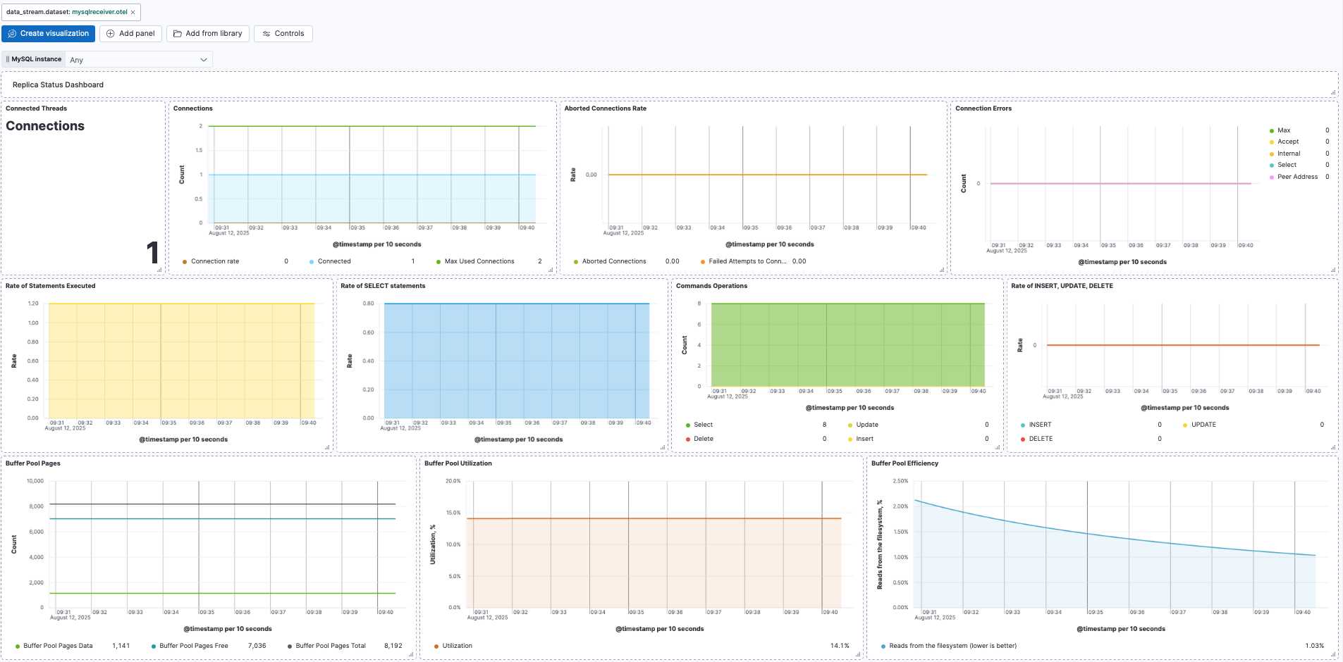 The MySQL OpenTelemetry assets provide a visual representation of MySQL metrics collected via OpenTelemetry (MySQL receiver), enabling you to monitor database performance and troubleshoot issues effectively in real time.
