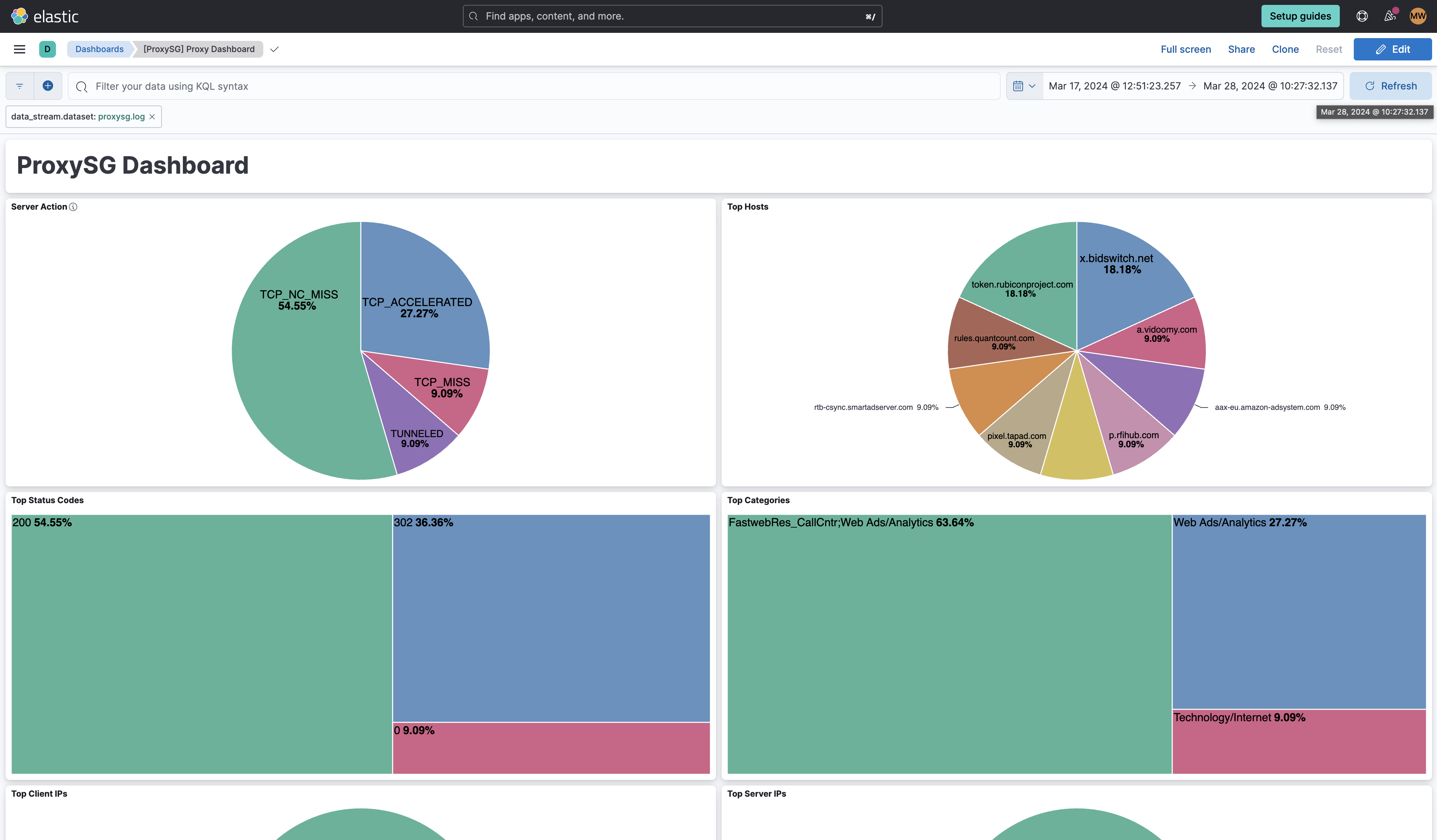 ProxySG access logs can be exported from the appliance via syslog or file upload; the integration supports both.