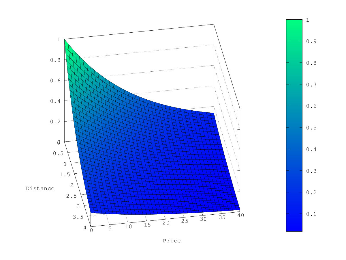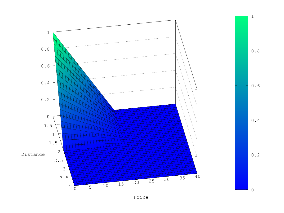 Suppose you are searching for a hotel in a certain town. Your budget is limited. Also, you would like the hotel to be close to the town center, so the farther the hotel is from the desired location the less likely you are to check in.