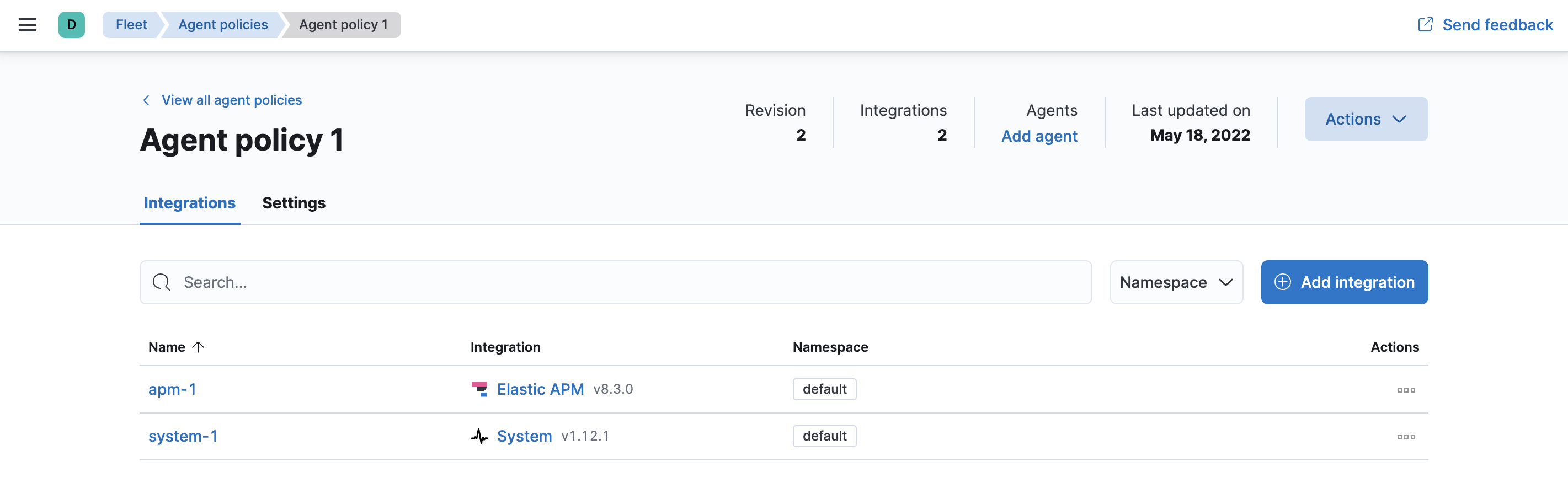 . Skip this step if you’ve started the Elastic Stack with security enabled (you cannot change this setting because it’s managed outside of Fleet).Save and apply the settings.
